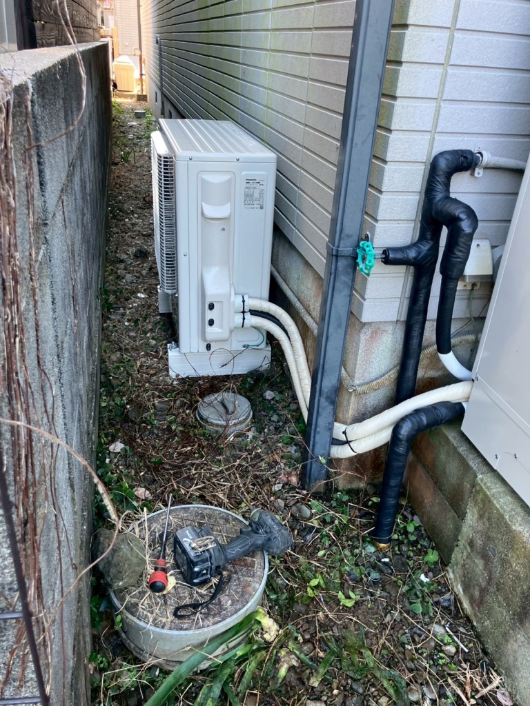 ヒートポンプユニットを横のスペースへ移動して再設置。